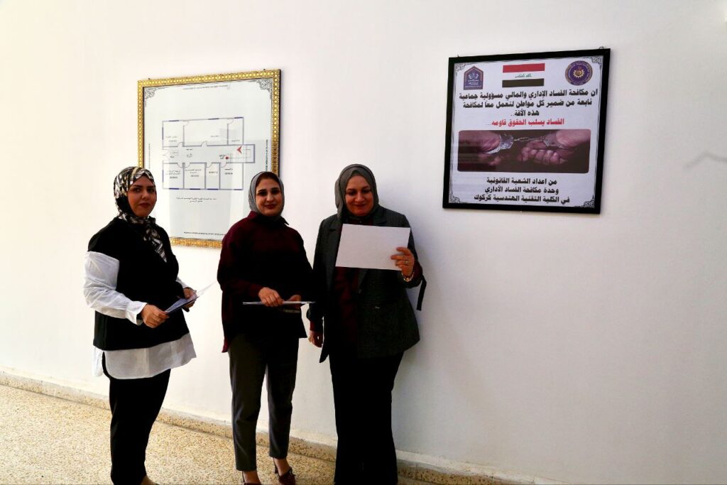 برعاية السيدة رئيس الجامعة التقنية الشمالية الأستاذ الدكتورة علياء عباس العطار، وبإشراف السيد عميد الكلية التقنية الهندسية كركوك الأستاذ المساعد الدكتور سامي رضا إسلان، نظّمت وحدة مكافحة الفساد الإداري في الكلية حملة توعوية تمثلت بتوزيع منشورات خاصة بمكافحة الفساد الإداري والمالي.